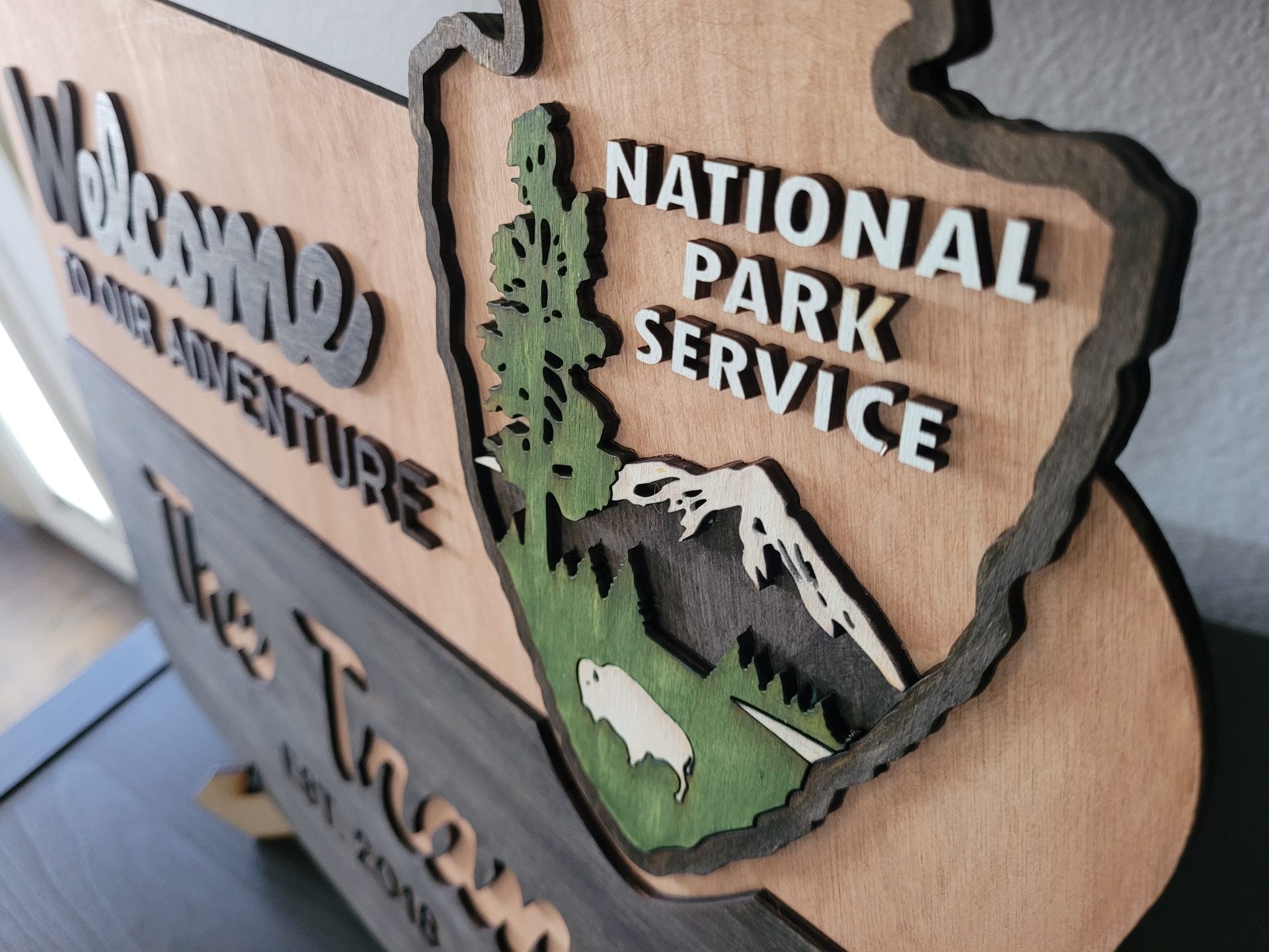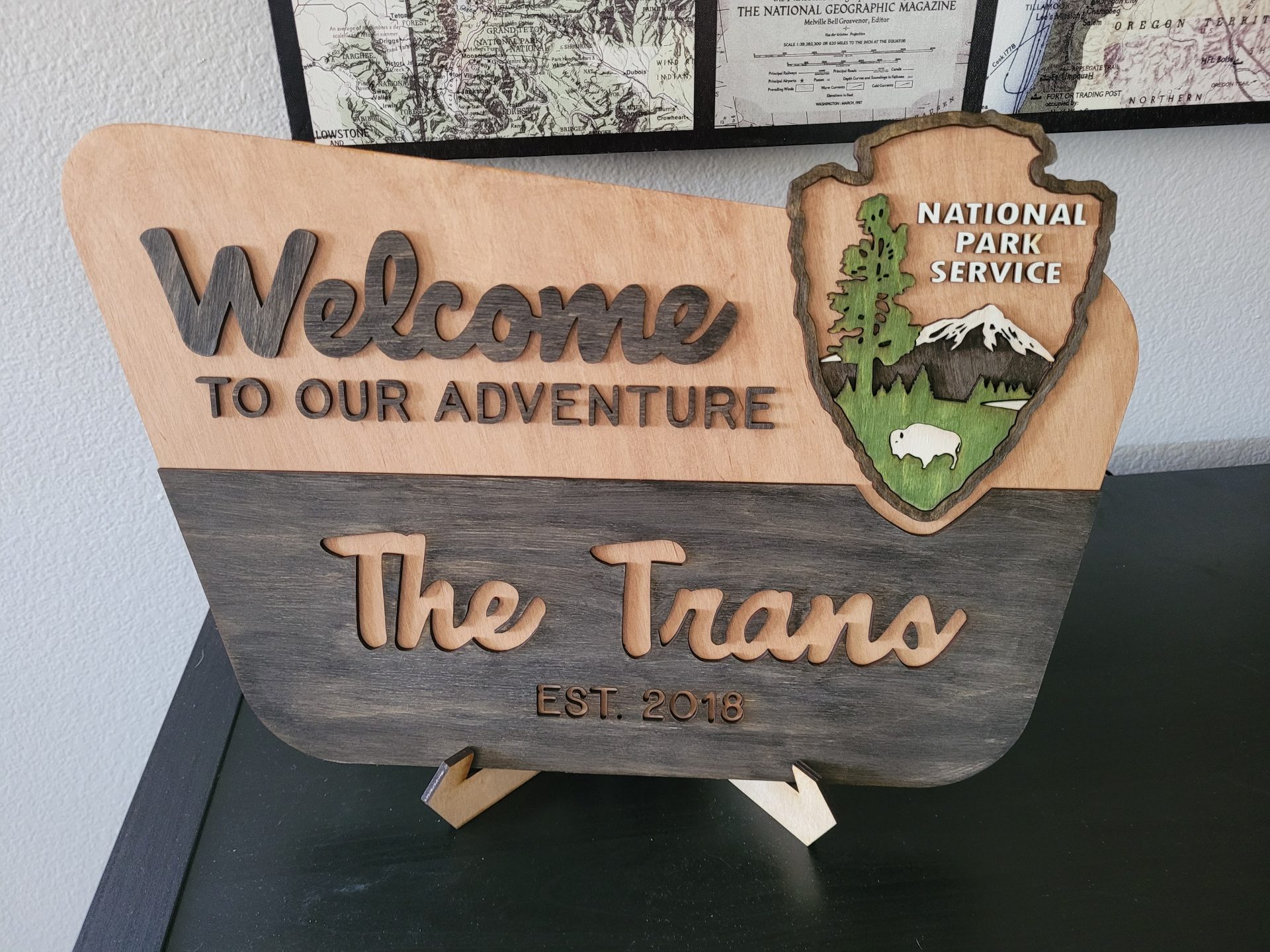 Was able to recreate this from a shop I saw on Etsy. Custom made Welcome To Our Adventure National Park Service sign. For sale on Etsy for $75. If you’re local in Fort Collins its $60.