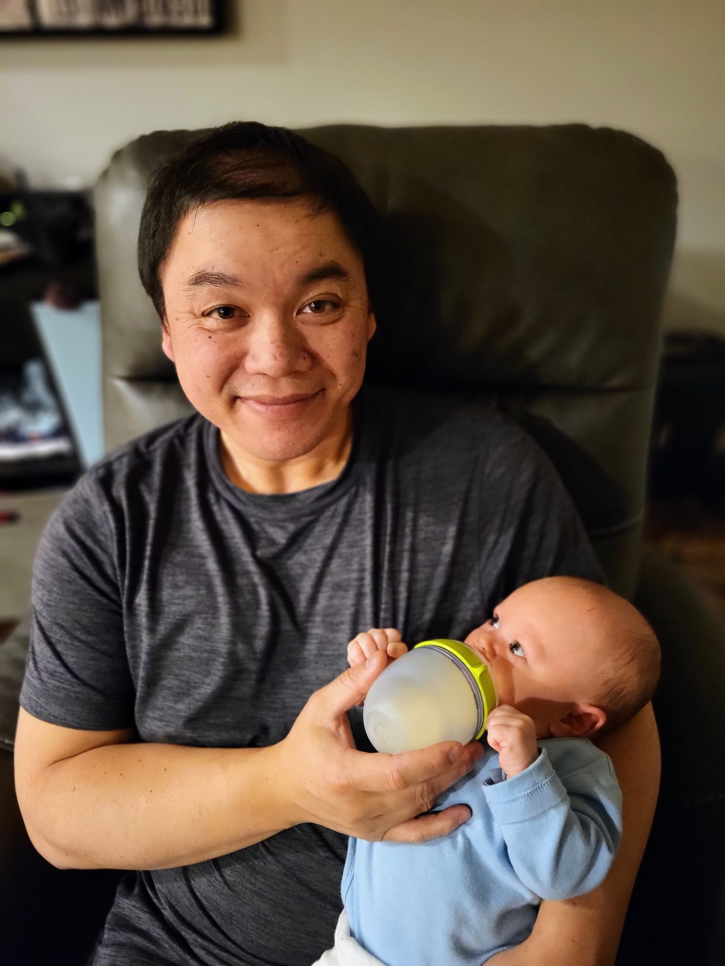 First attempt at bottle feeding. He didn’t like it at first. Why would he?