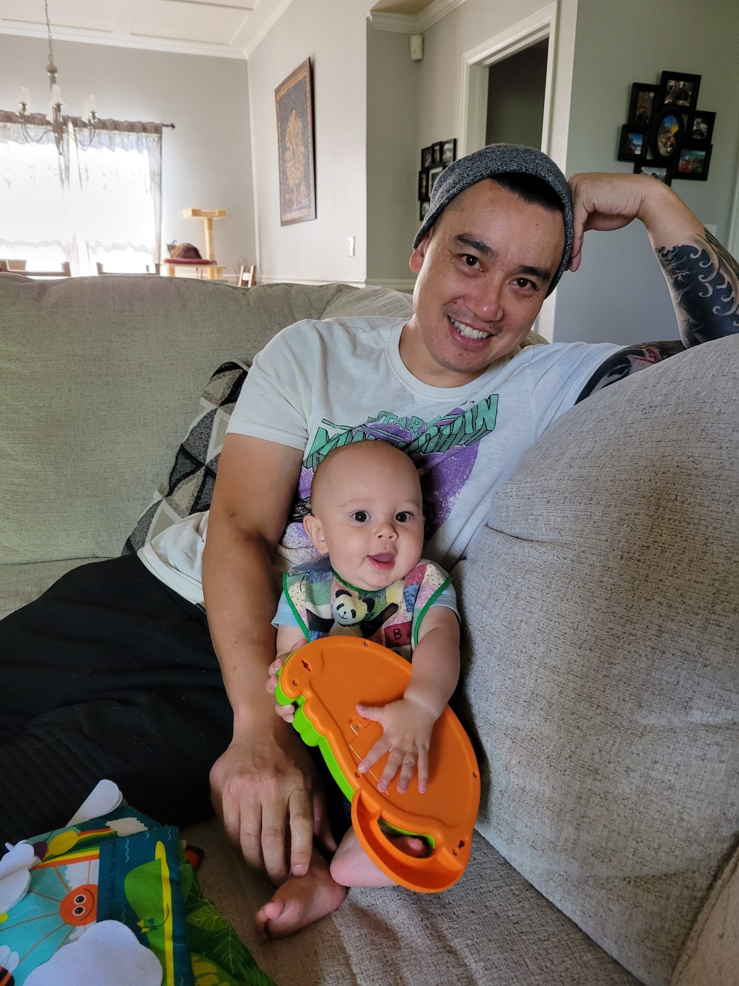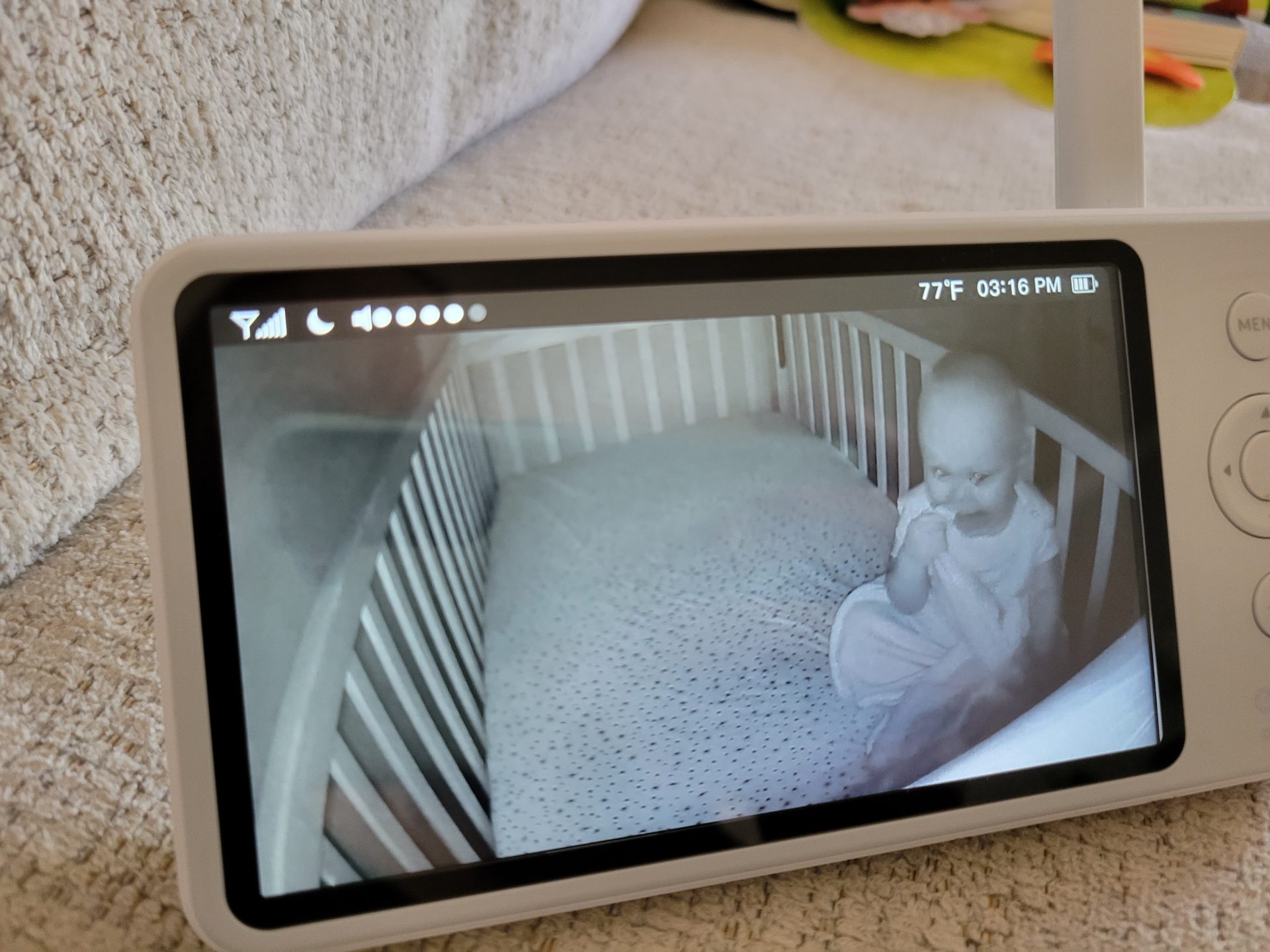 Cato used “nap time” to get from laying down to sitting for the first time, discovered a new toy, and then was quite upset when that new toy was promptly taken away 🤣