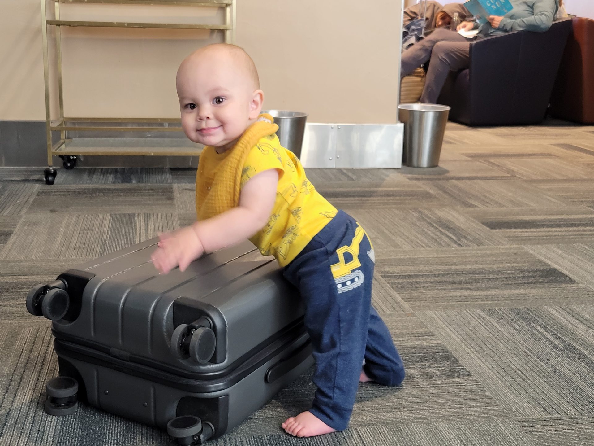 Cato’s first airline flight, ferry ride, and visit to the Pacific Ocean!