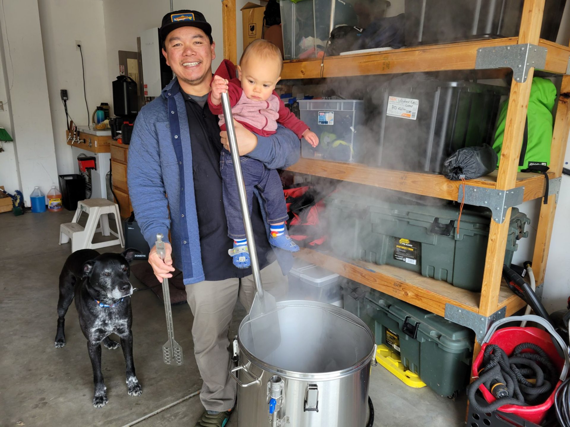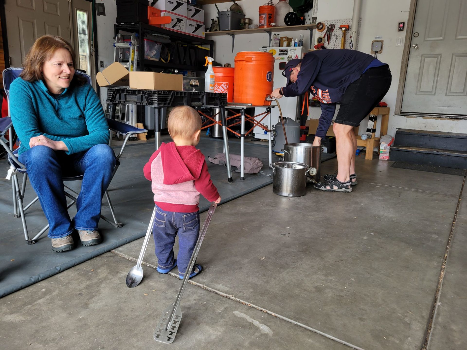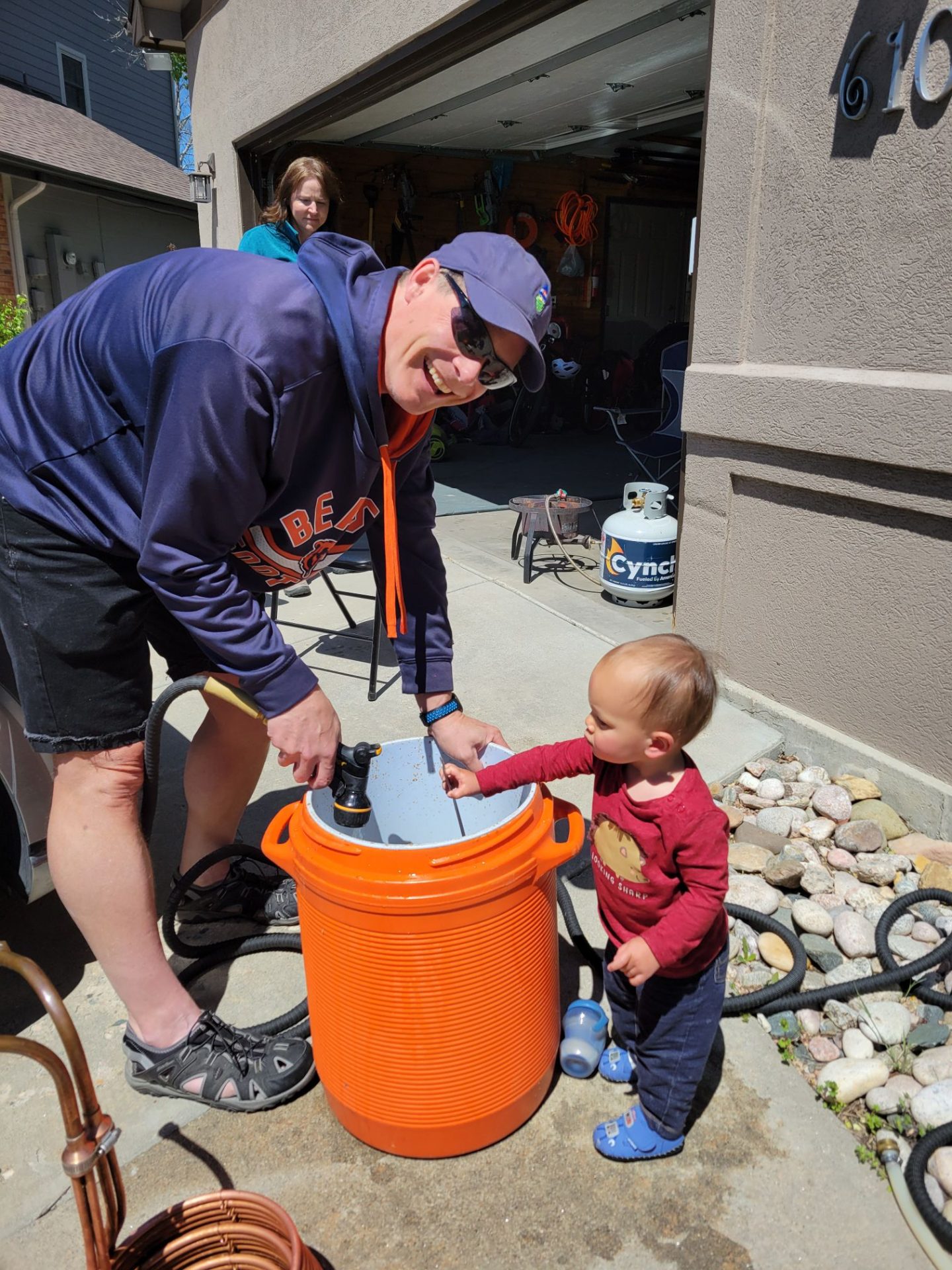 The first Saturday in May is Big Brew Day to celebrate National Homebrewers Day. We stared with a chilly morning, but then the day warmed up nicely. The smoked ribs were a hit for lunch and after brewing, we migrated to Zwei Brewery (Cato had fun learning about chalk and dancing to the band).
