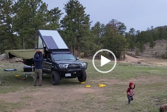 Click on the video image to view a clip of Cato exploring at camp while Du sets up the new awning on the truck.