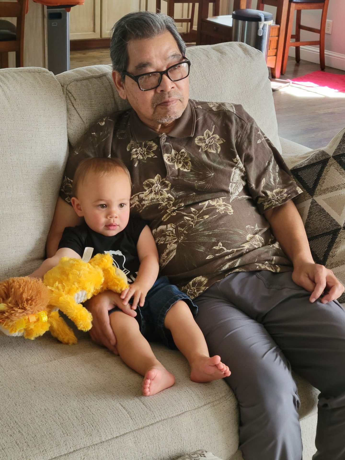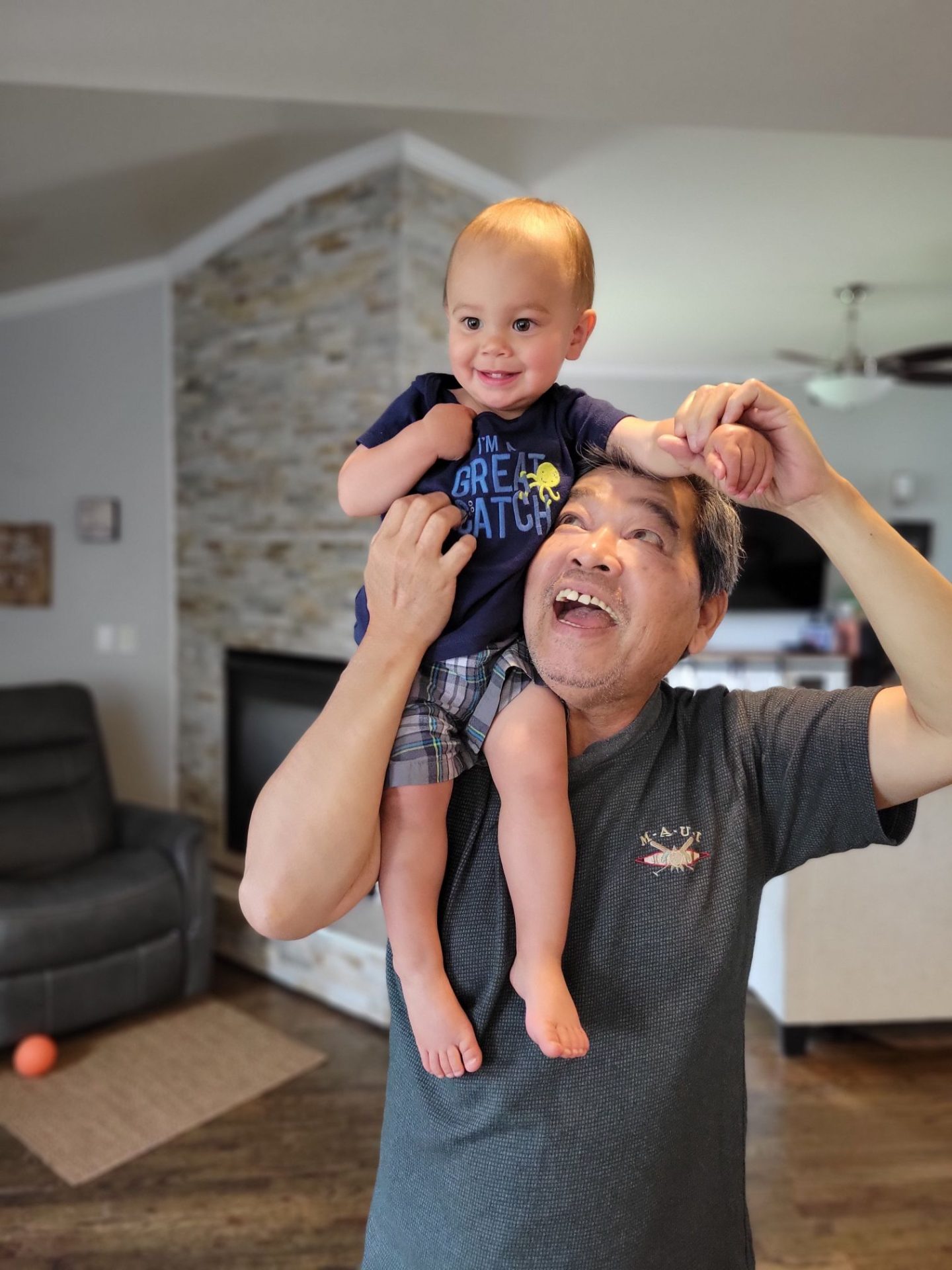 Cato is working on moving up from eating with just his hands to learning how forks work…