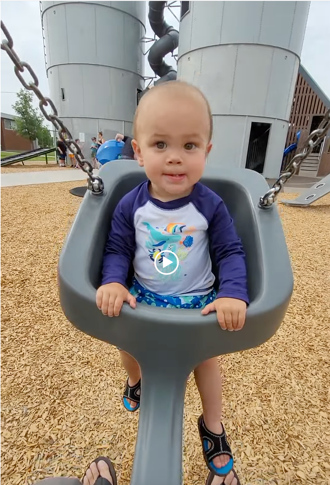 Your 18 month old on a swing is a hilarious mix of astronaut-in-training and confused potato.