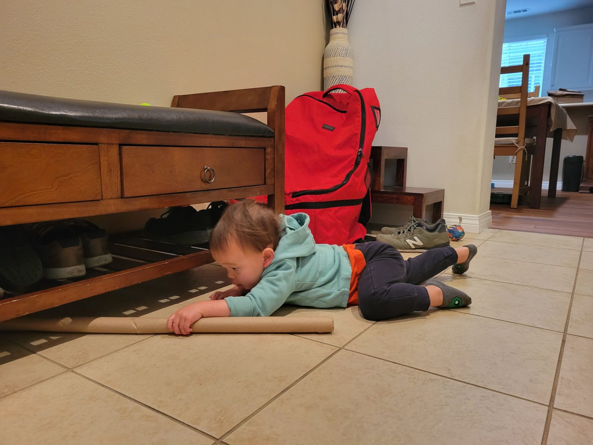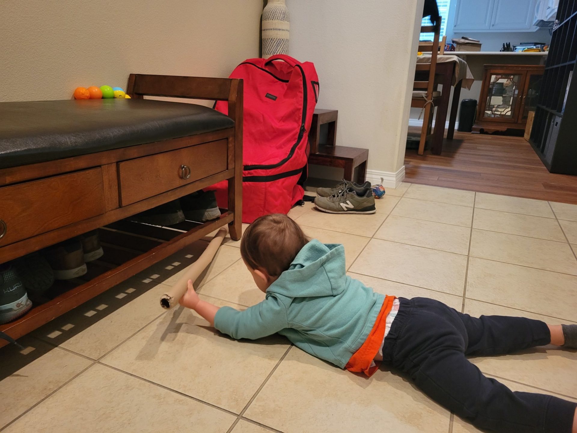 Cato loves throwing/ losing his balls where he can’t reach them… so today, we learned how to use a wrapping paper cardboard tube as a tool to self help 😁