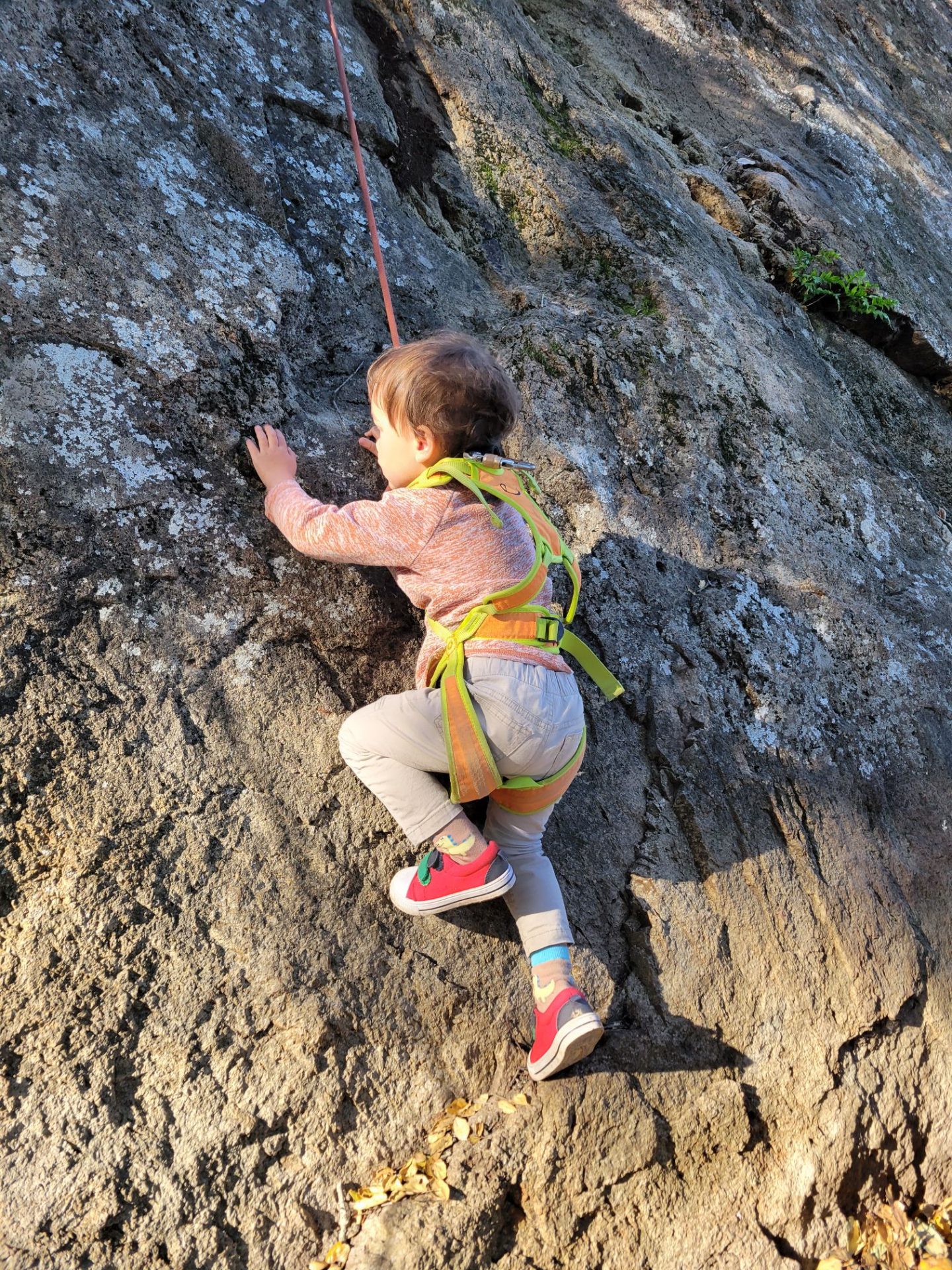 For Cato’s first time climbing outside (and Breana’s first time climbing since Cato was born), we tagged along with Sierra, Clay, and friend to check out the newer “Bunny Wall” on Bishops Peak. Cato rocked the approach hike but still isn’t so sure about this climbing thing, lol. Next time, we’ll try getting him some actual climbing shoes and remember his bike helmet, so hopefully, that will help!