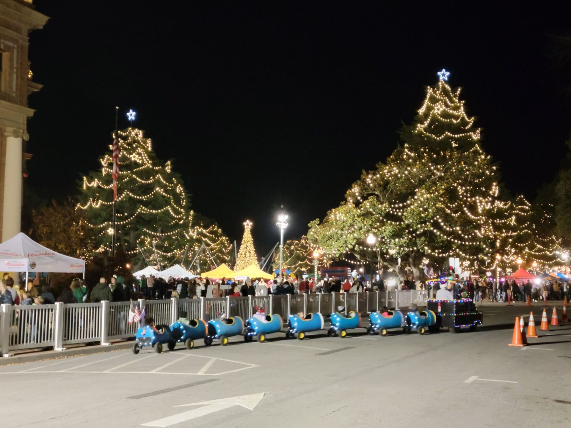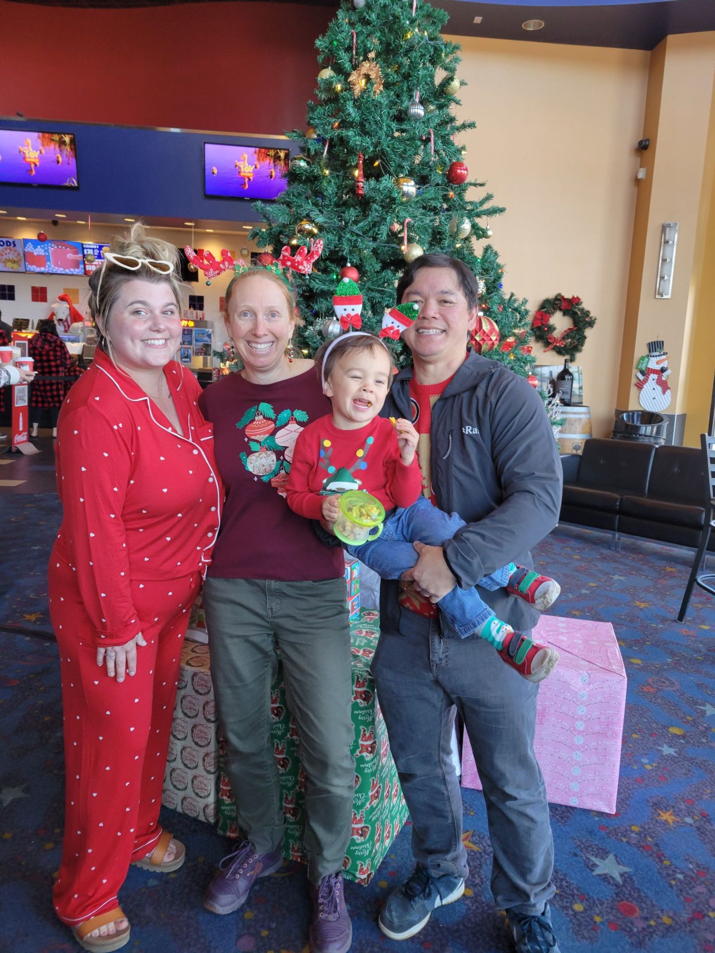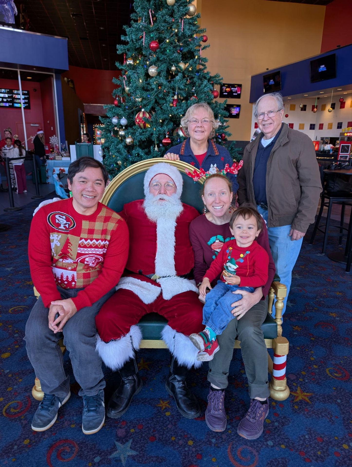 Friday evening was the Atascadero Winter Wonderland event at the Sunken Gardens. The line for snow play was a little too long, but Cato still had a blast riding the train and checking out the bounce houses. Then, Saturday morning was our preschool fundraiser showing of Polar Express at the movie theater! Santa was even waiting for us when we got out of the movie.