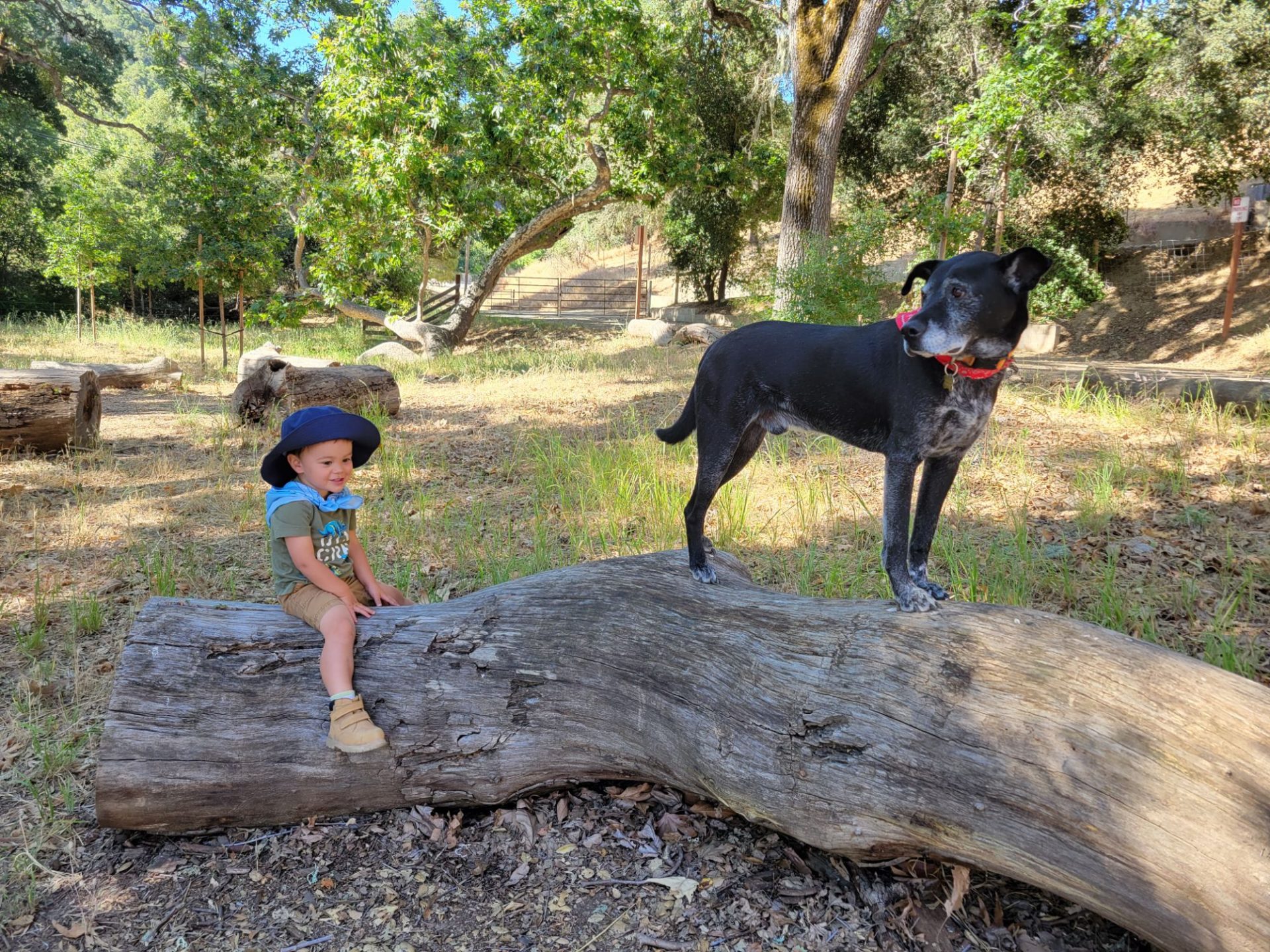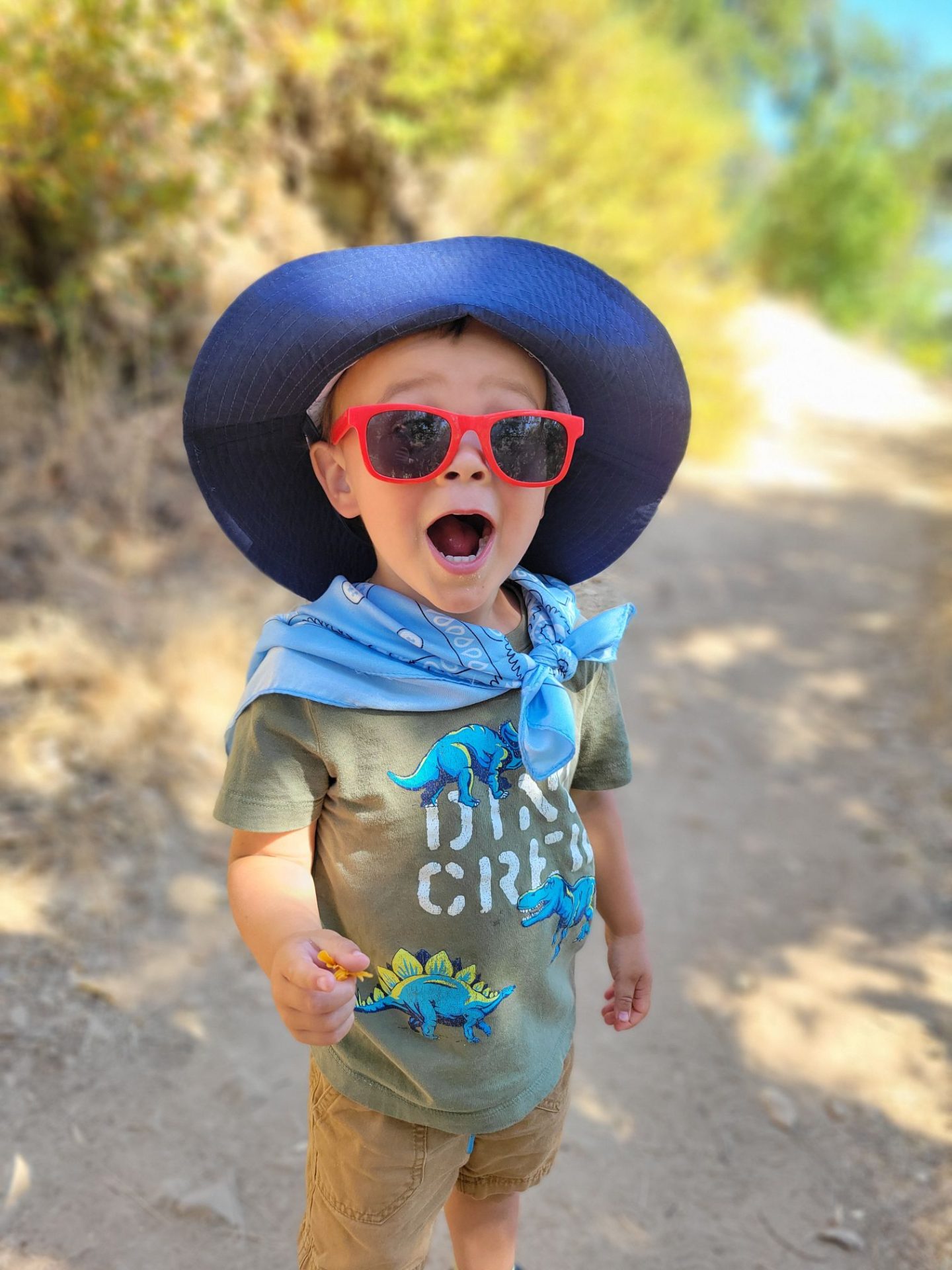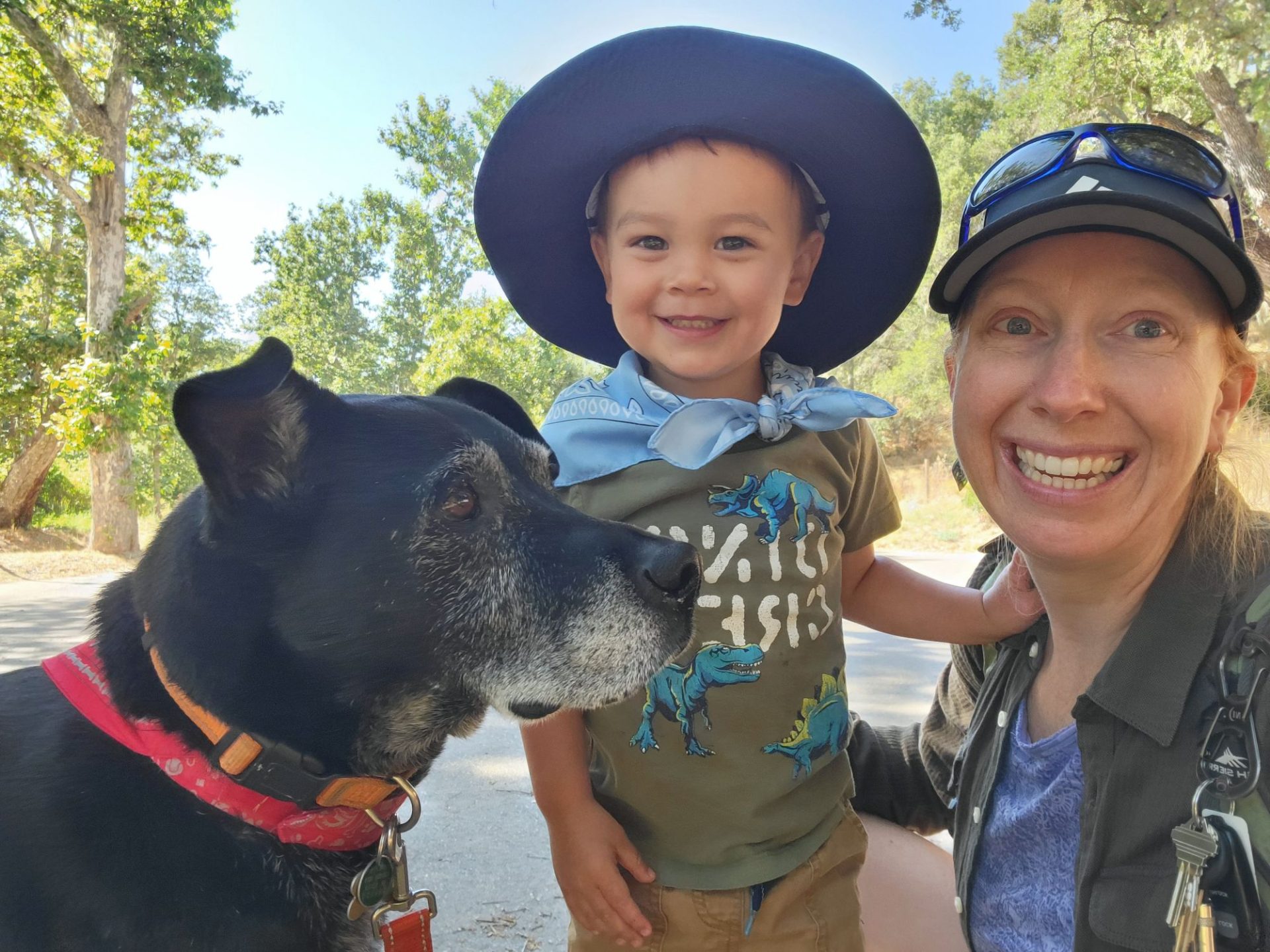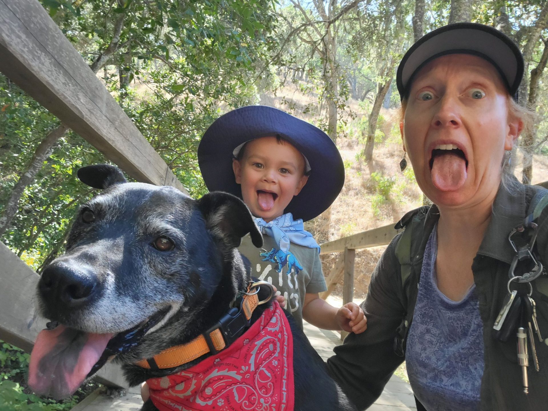 Such a beautiful trail and cooling off in the creek afterward was a huge bonus! Even getting an early start, it warmed up fast, but Cato was a trooper (he only asked for a short ride, lol). Cato wanted us all to pant with Jasper in a picture.