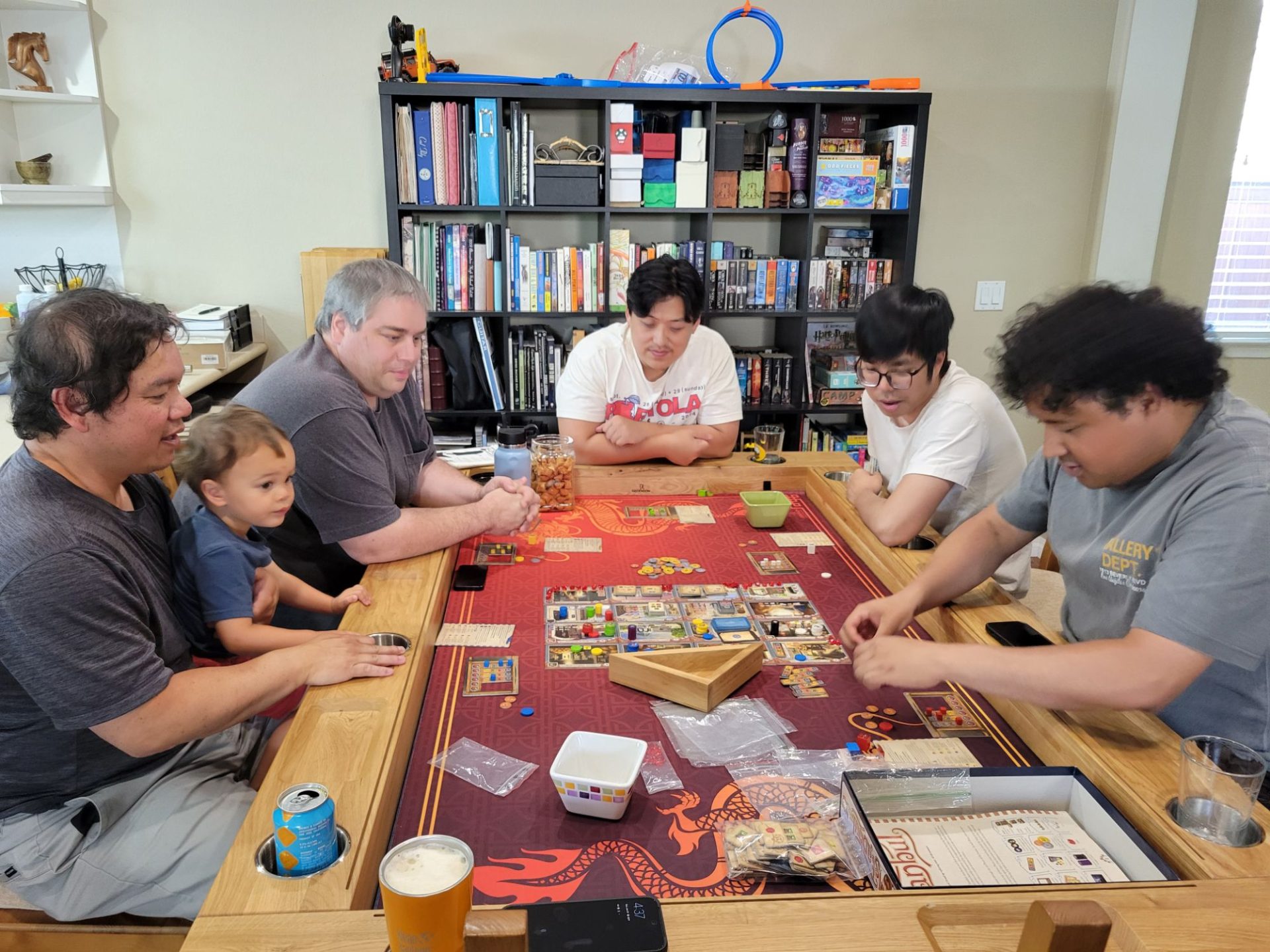 It was a fun afternoon playing board games with friends! Istanbul did not disappoint (we actually did two rounds with different players). Du cooked some delicious BBQ for dinner (Jasper approved!) and Cato had fun getting to play with Quang. When I announced “Bed time!” Cato crawled under the table to sleep with Jasper 🥰