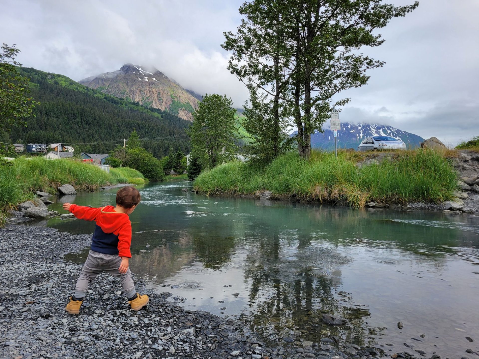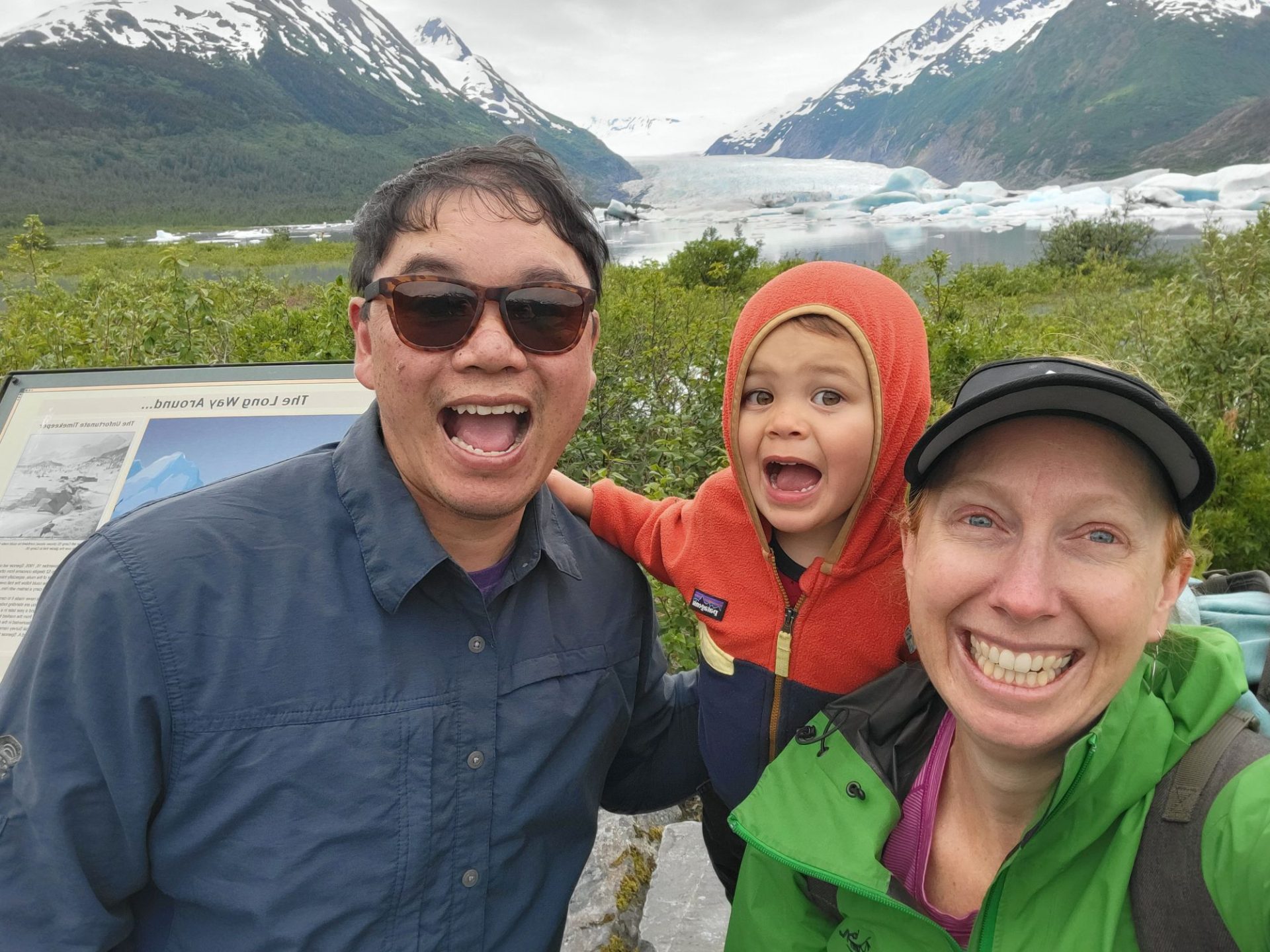 We had a fantastic time checking out Anchorage for 4 days and then driving down to Seward to explore for another 3 days. Highlights included a Reindeer Farm (with a practice roof ;-), watching planes at the world’s largest sea plane base, a Glacier Discovery train ride, hiking to Exit Glacier in Kenai Fjords National Park, and a 6hr boat tour into the same park. As always, Cato’s favorite activities involved throwing rocks into water, climbing on tractors, and scrambling over rocks/roots while hiking. He also loves airplane trips because then he gets to ride on LOTS of escalators, moving walk ways (running laps, if time permits), and underground trams.