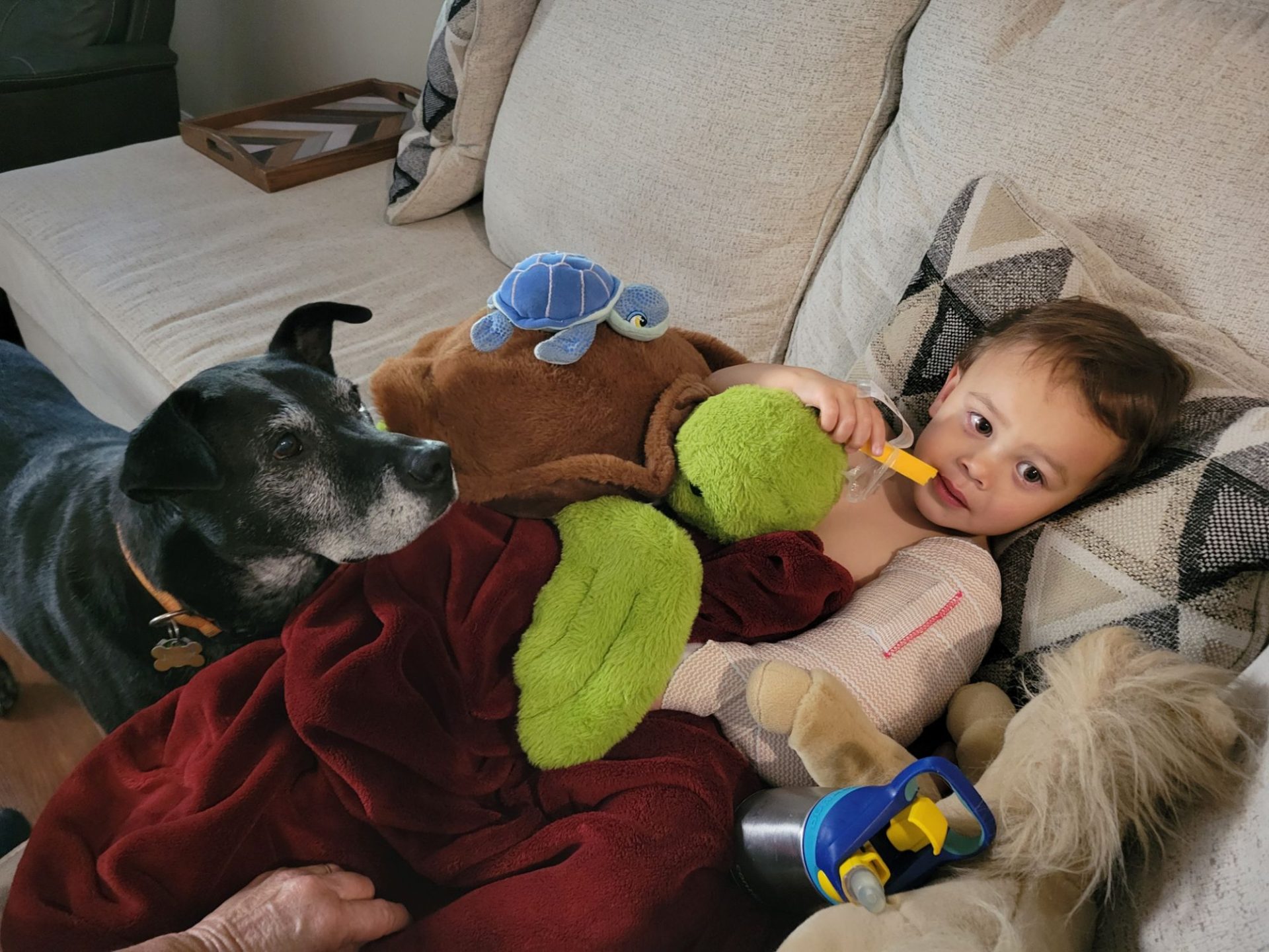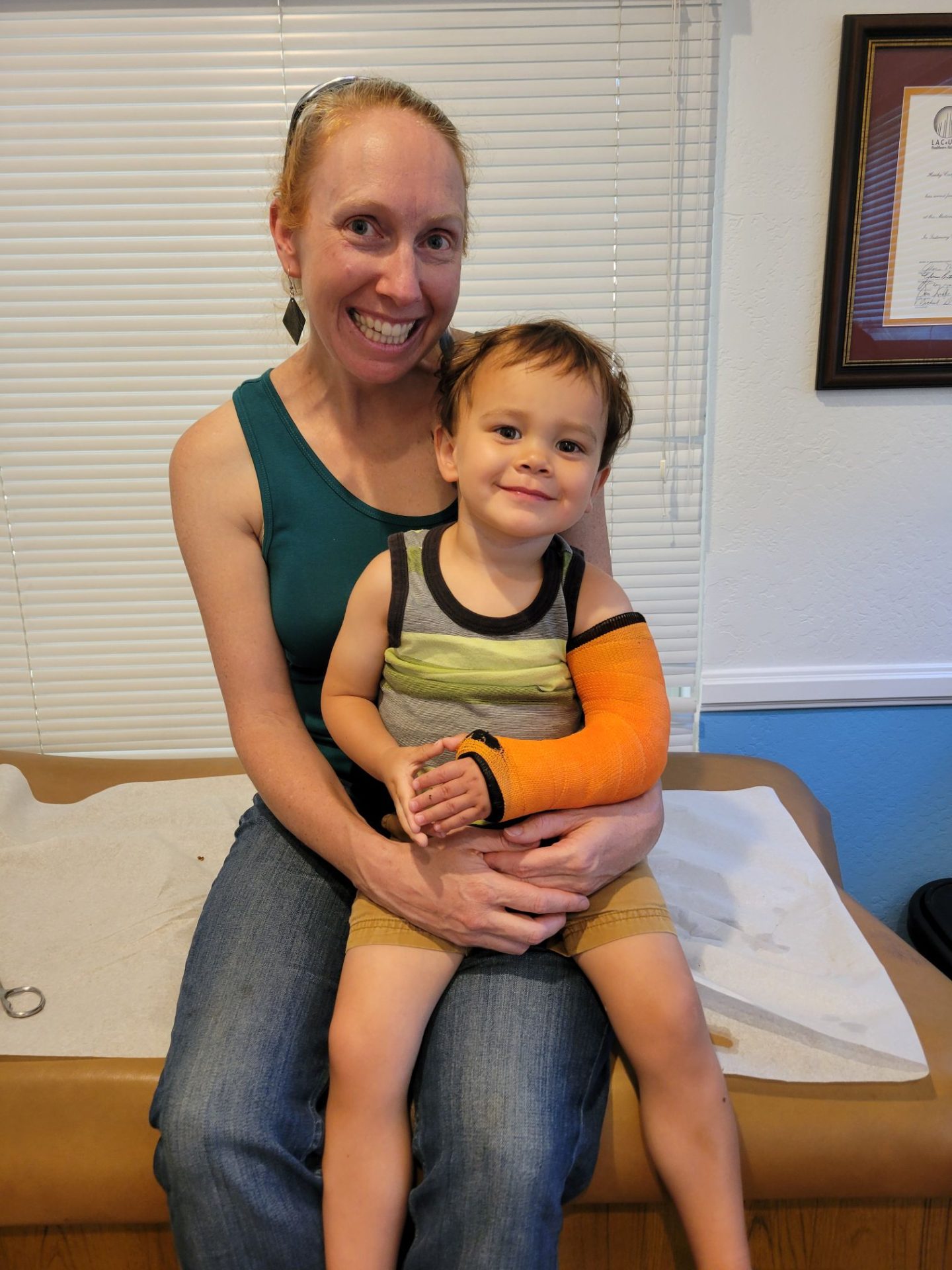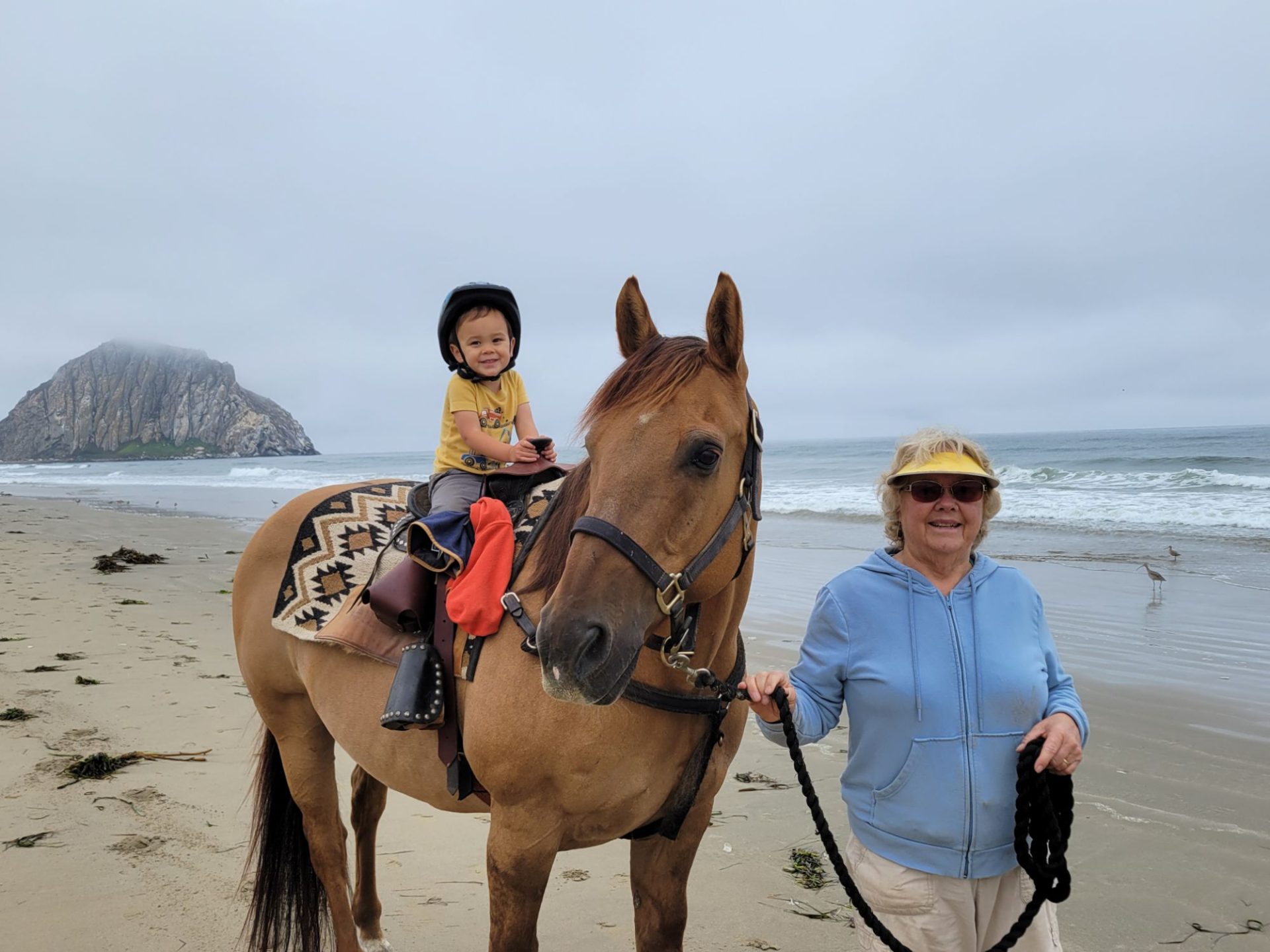 Great morning riding in Morro Bay at the beach with Sierra. However, Dunny thought he saw a sea monster in the waves and unexpectedly skedaddled out of the water in a hurry. Cato held on for a while but then hit the sand hard. The nice Urgent Care, ER, and Orthopedic Surgeon office staff were all great helping us with his broken arm, and Cato’s been a serious trooper! He was especially intrigued with being inside a monster donut!